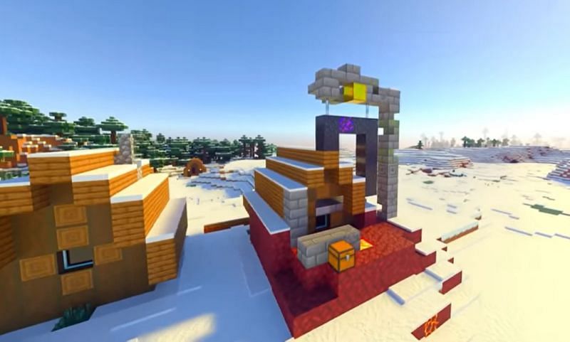 En esta semilla, los jugadores descubrirán un portal en ruinas que se ha fusionado con la casa de un aldeano.